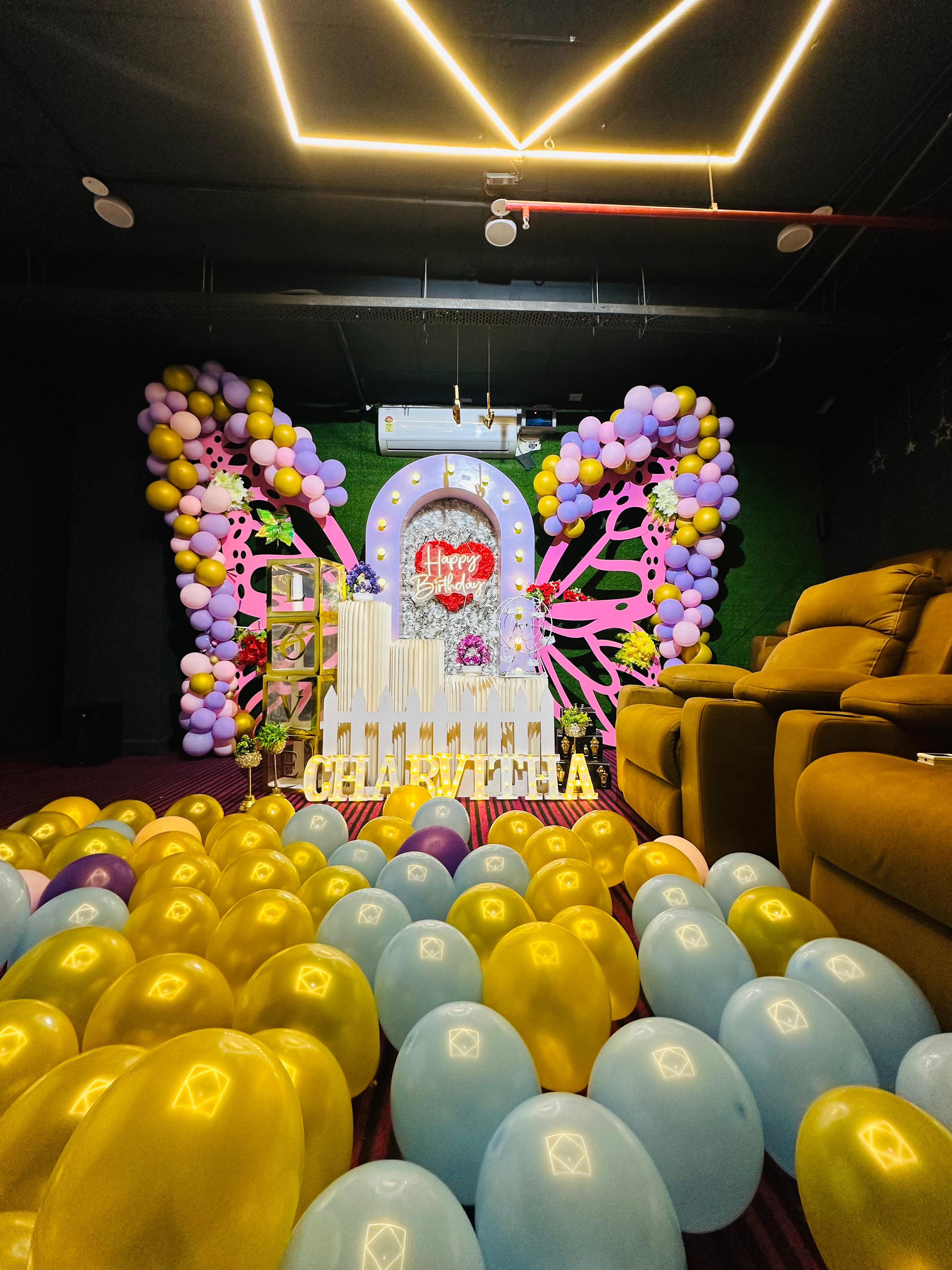 Perfect for Romantic Dates, Birthday, Anniversaries, Private Parties, Celebrate Birthdays, Anniversaries, Date Nights & Much More,. We Will Arrange Everything Decoration, Cakes, Snacks, Beverages, Softdrinks, Gifts & More. Popcorn Celebrations Private Theatre in KPHB, Hyderabad, is a haven for movie enthusiasts and celebrators alike. Nestled in the bustling area of KPHB, this unique venue offers a perfect blend of entertainment and celebration, making it an ideal spot for various occasions. At Popcorn Celebrations, the concept of a PRIVATE THEATRE takes on a whole new level. Imagine having your own personal cinema where you can enjoy your favorite movies with friends and family in a cozy and intimate setting. Whether it's a birthday party, anniversary celebration, or just a casual get-together, this private theatre provides the perfect ambiance for a memorable experience. One of the standout features of Popcorn Celebrations is its state-of-the-art movie streaming technology. Equipped with high-definition projectors and surround sound systems, guests can immerse themselves in the cinematic experience like never before. From classic blockbusters to the latest releases, the extensive movie library ensures that there's something for everyone's taste. The venue itself is designed to evoke the feeling of being in a traditional cinema while offering the comfort and privacy of a personal space. Plush seating arrangements, dim lighting, and themed decor add to the overall charm of the place, creating an inviting atmosphere for guests to relax and enjoy the show. In addition to movie screenings, Popcorn Celebrations also offers customizable celebration packages to suit various occasions. Whether you're planning a kids' party complete with popcorn and candy or a sophisticated soiree with gourmet snacks and cocktails, the dedicated staff ensures that every detail is taken care of, allowing guests to simply sit back and enjoy the festivities. Located in the heart of KPHB, Popcorn Celebrations Private Theatre is not just a venue; it's an experience. Whether you're looking to celebrate a special occasion or simply unwind with friends, this hidden gem offers the perfect blend of entertainment, luxury, and convenience, making it a must-visit destination for movie lovers and party-goers alike.